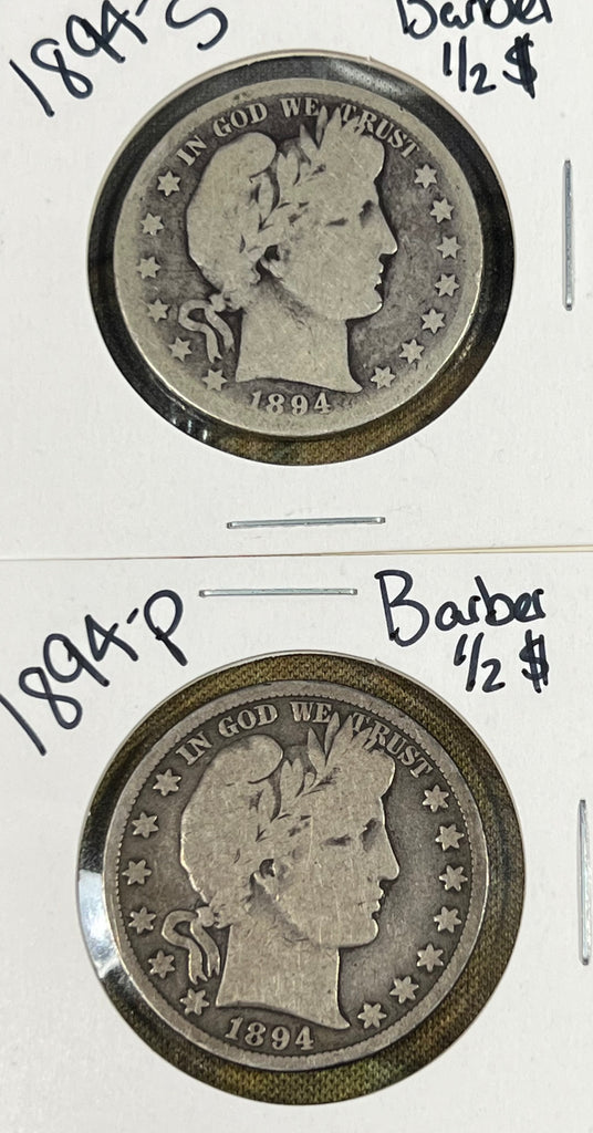 (2) BARBER Half Dollar LOT 1894 P & 1894 S Barber Half Dollar *G-VG Slider* **Free Shipping** CLICK HERE TO Bid!!!