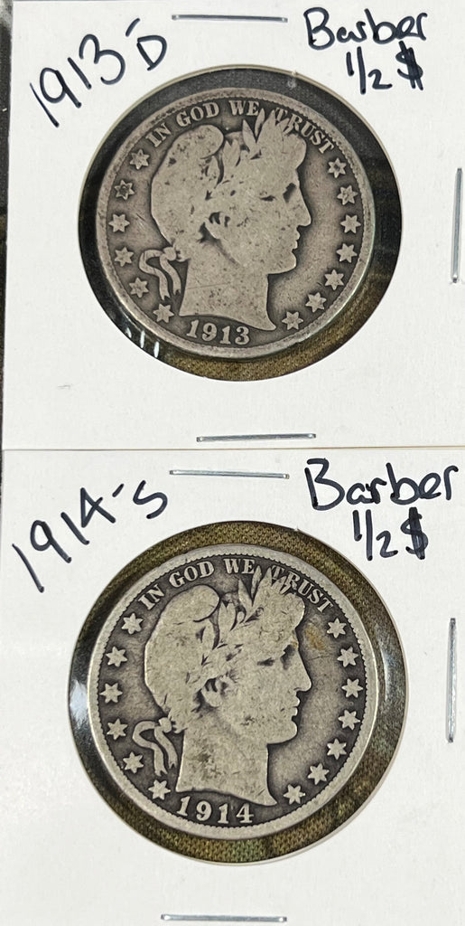(2) BARBER Half Dollar LOT 1913 D & 1914 S Barber Half Dollar *G-VG Slider* **Free Shipping** CLICK HERE TO Bid!!!
